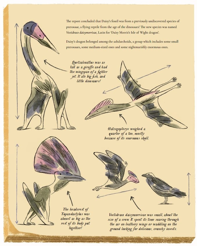 Daisy was just four years old when she discovered an unusual fossil on the beach near Shepherd’s Chine on the Isle of Wight. It turned out to be a hip bone from a small pterosaur – a previously undiscovered species. Daisy’s pterosaur was named after her: Vectidraco daisymorrisae (Daisy Morris’s Isle of Wight dragon!)
